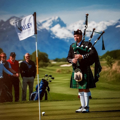 zum Thema Golf & Musik – es ging um den Dudelsackspieler von Valley.